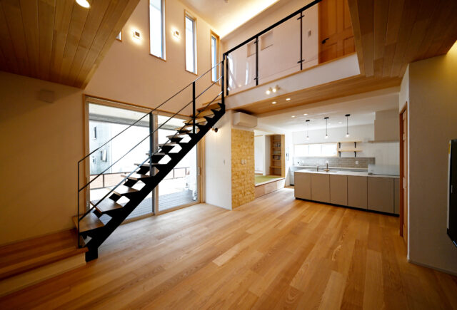 天然の素材に囲まれる優しい暮らしを実現しました。 LDKに和室、階段と家族のコミュニケーションを豊にする間取りと 効率的な家事動線で毎日の暮らしを楽しくします。 吹き抜け…